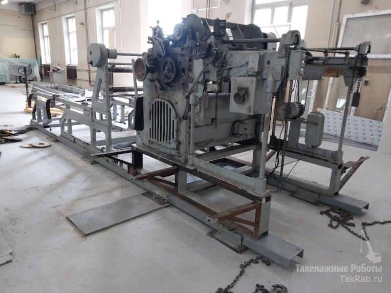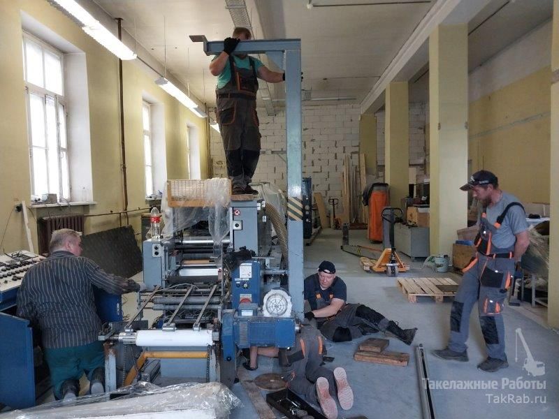 Для выполнения данных работ были привлечены квалифицированные специалисты для проведения демонтажа и последующего монтажа оборудования. Основная наша команда занималась помощью в демонтаже тяжелых частей оборудования, а главным образом осуществляла такелажные работы по перемещению станков, их строповки, выносу/заносу в проёмы, и конечно перевозки оборудования.