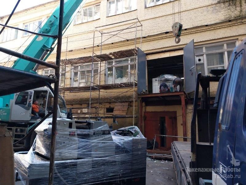- новая площадка была тоже не на первом этаже, поэтому пришлось большинство единиц оборудования подавать автокраном в такелажный проём.