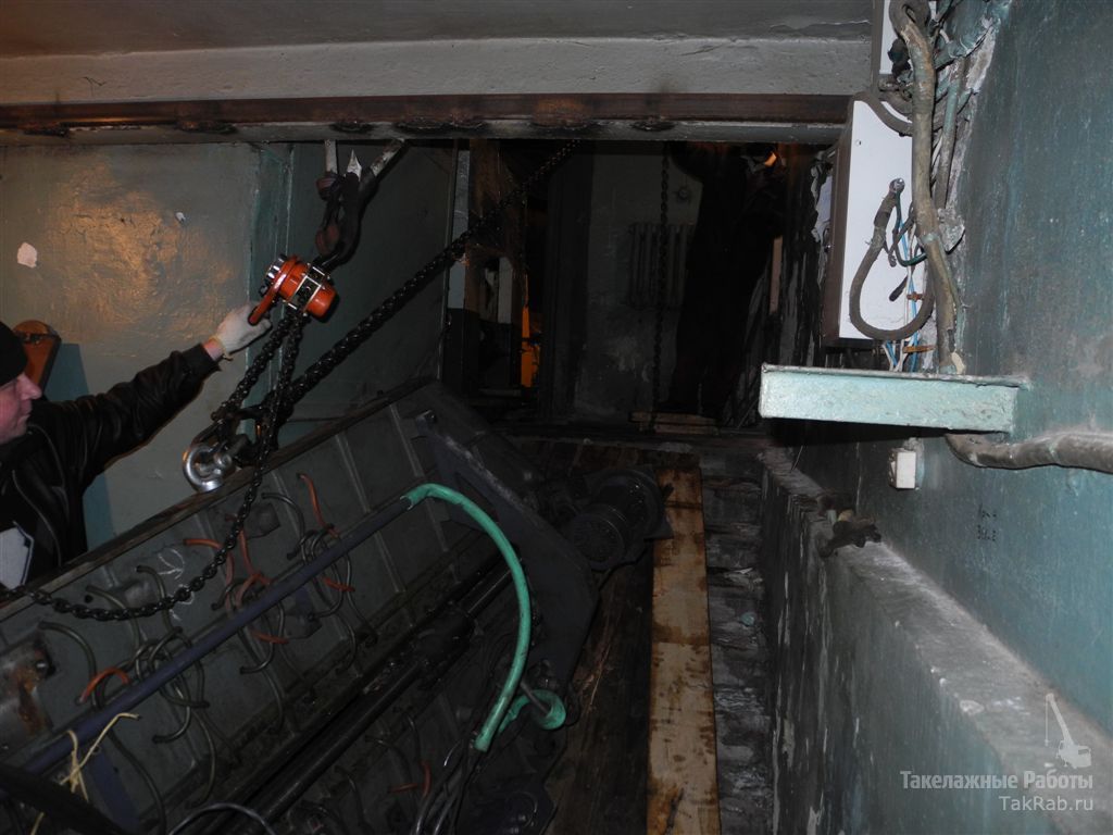 В данном случае пришлось использовать большой арсенал такелажного оборудования – цепные и рычажные тали, низкоподхватные домкраты, лебёдку МТМ, такелажные платформы и другой вспомогательный инструмент