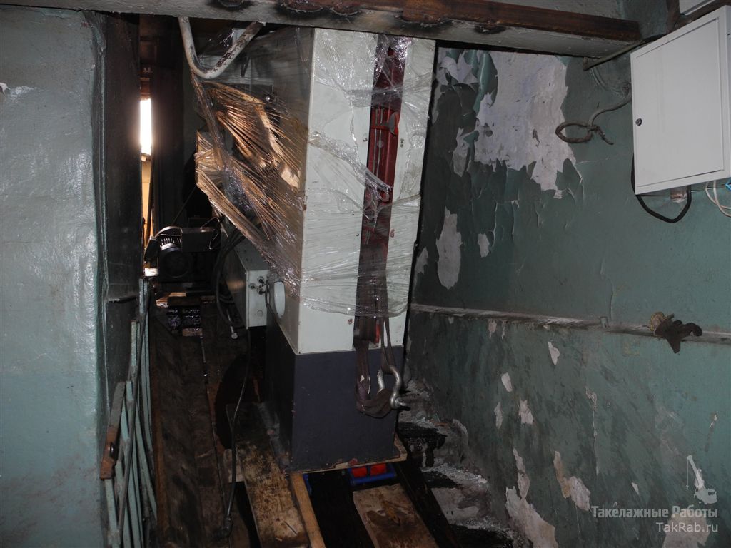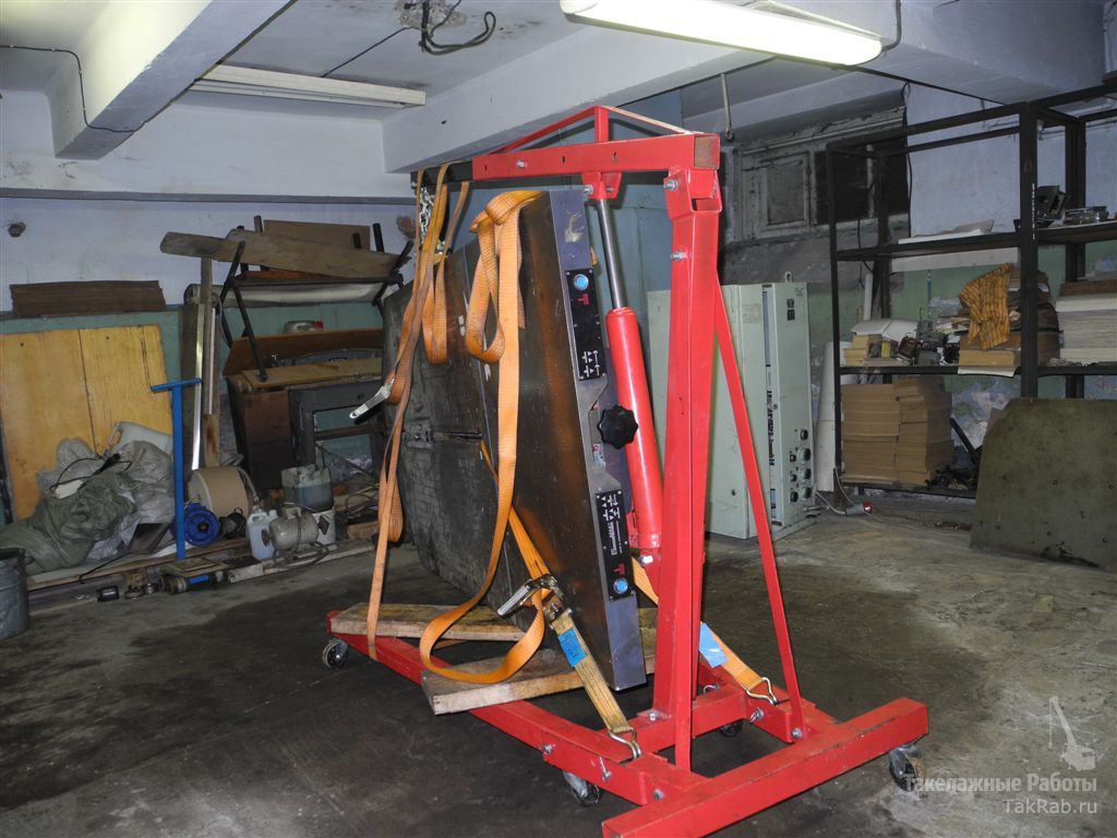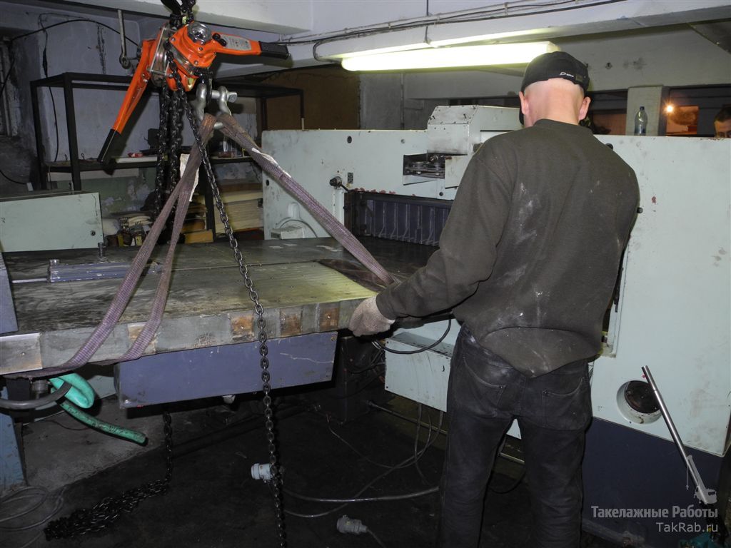 Такелажные работы по спуску в подвальное помещение одноножевой бумагорезальной машины Adast Maxima MS-115 весом более 3-х тонн.