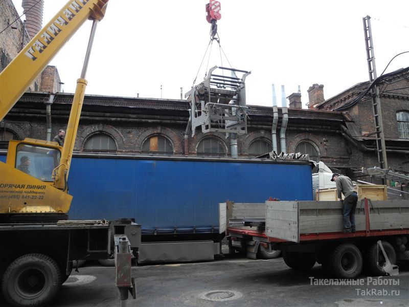 Был произведён большой объём работы по демонтажу двухъярусной рулонной печатной машины MAN Roland Uniset. Но самое сложное, конечно, было не выполнить демонтаж, а произвести грамотно и аккуратно такелажные работы по расстыковки и опусканию верхних секций машины на уровень пола. В дальнейшем многотонные части оборудования были перемещены к такелажному проёму и с помощью крана перемещены в грузовик. Причём из внутреннего двора печатный станок перевозили на открытом грузовике, а во внешнем дворе производили перегрузку в фуру для транспортировке по России. Было загружено три фуры.