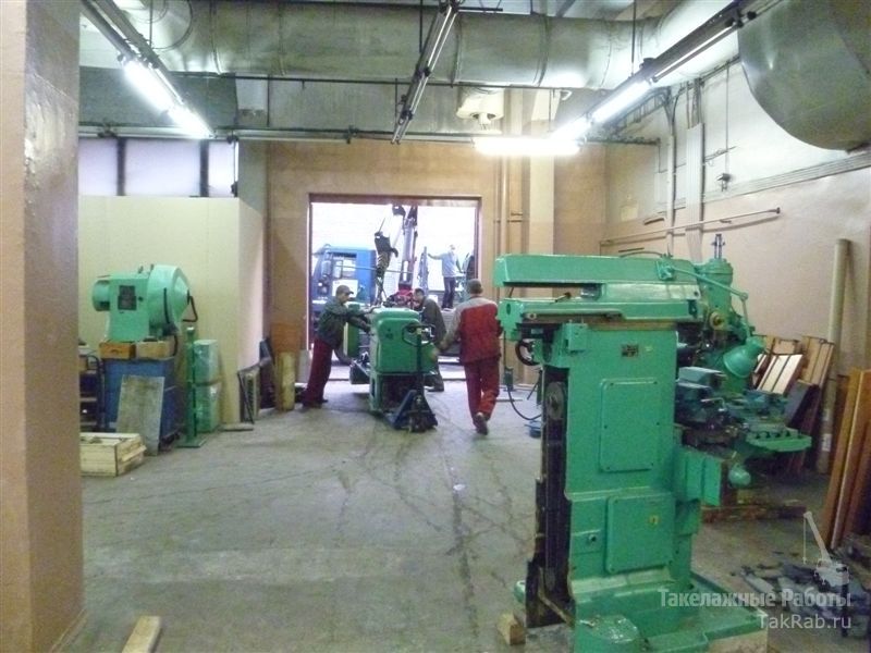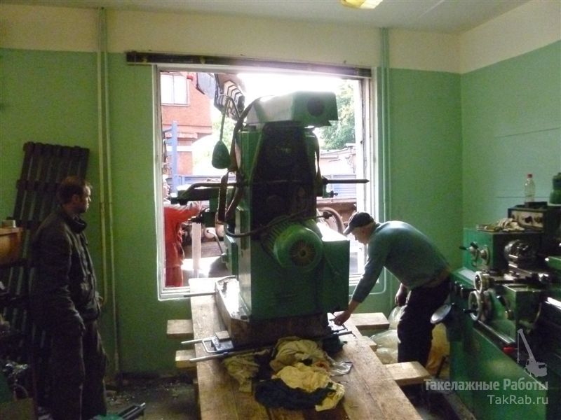 Токарная и фрезерная группа станков находилась в помещении с узкими проёмами, поэтому все станки транспортировались через оконный проём с минимальными зазорами.