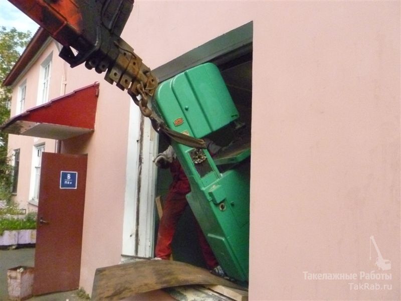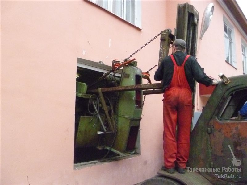 Гильотины и гибочные станки так же вывозились из неудобного для проведения такелажных работ помещения–это плохие полы, уклоны, пороги и другие сложности.