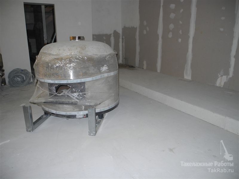 После этого необходимо было поднять печи на разгрузочный пьедестал. Так как печи имели довольно большой вес, владельцы торгового комплекса потребовали произвести инженерные расчёты и усилить пол под печами.