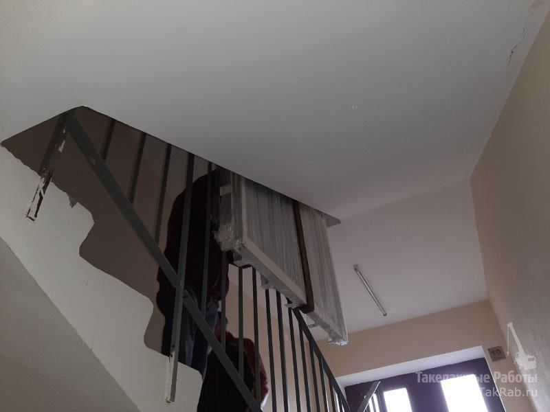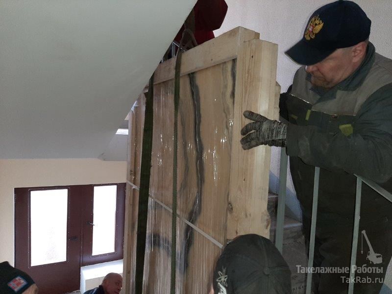 Подъём плиты из оникса в подъезде.